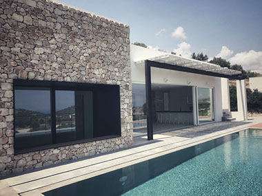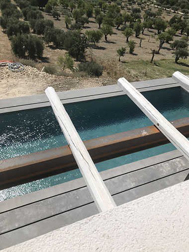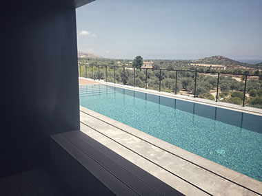 villa unifamiliare vista mare con suggestiva piscina a sfioro realizzata all'interno di un verdeggiante uliveto a pochissimi km dalla Città di Noto