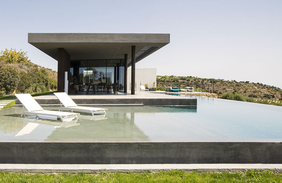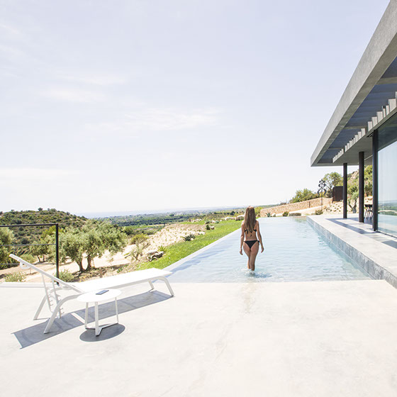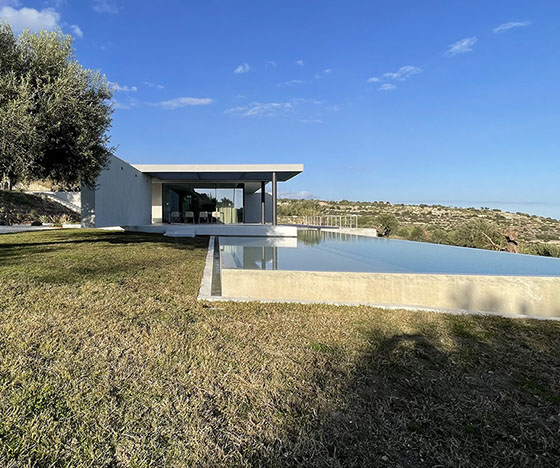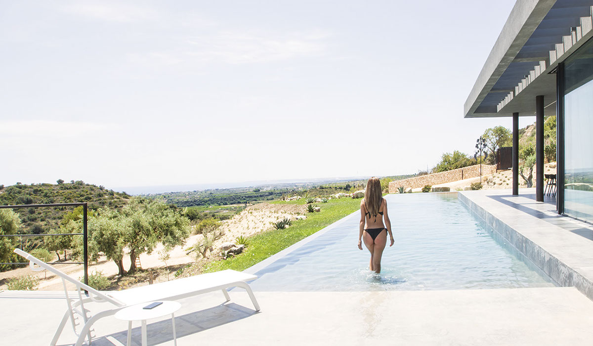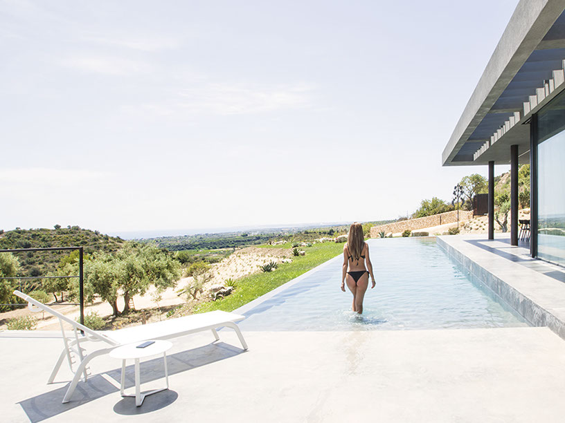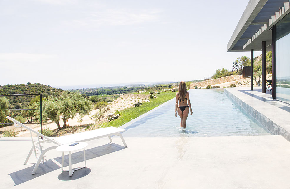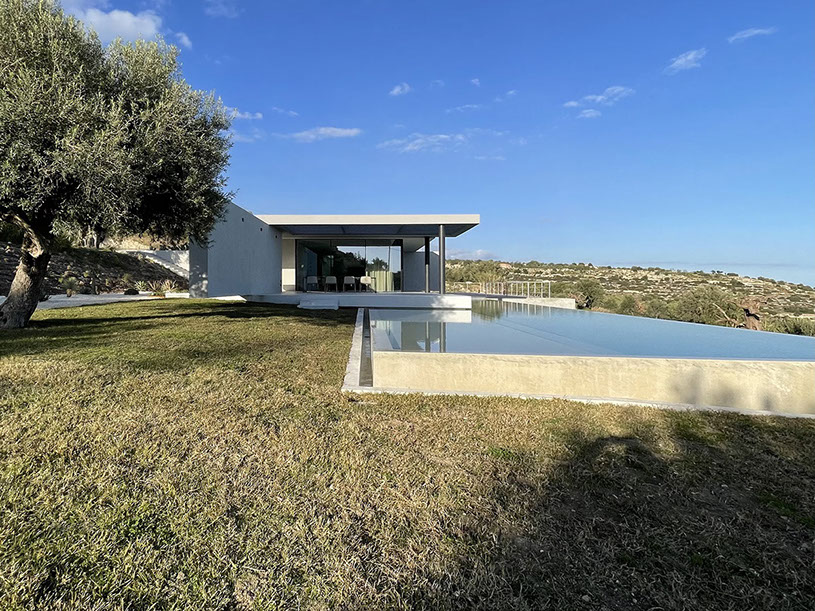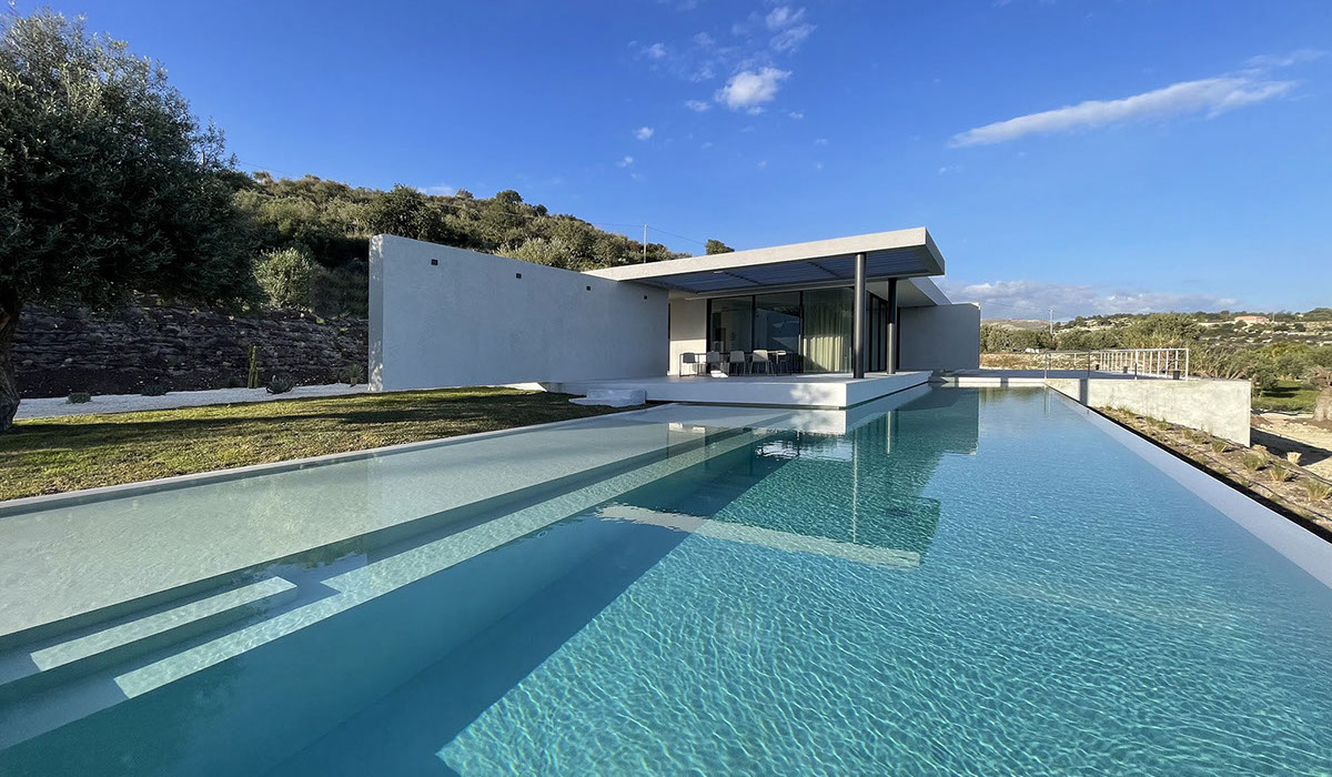 villa unifamiliare vista mare con piscina infinity a sbalzo realizzata nelle campagne siciliane a due passi dalla Città di Noto