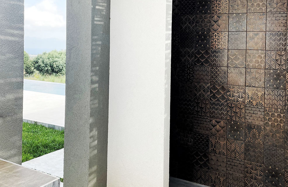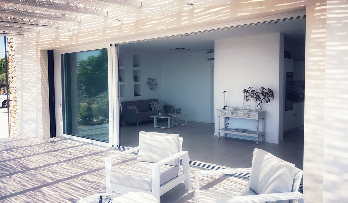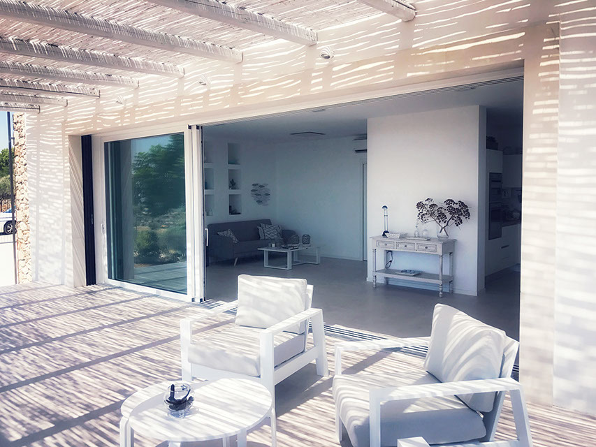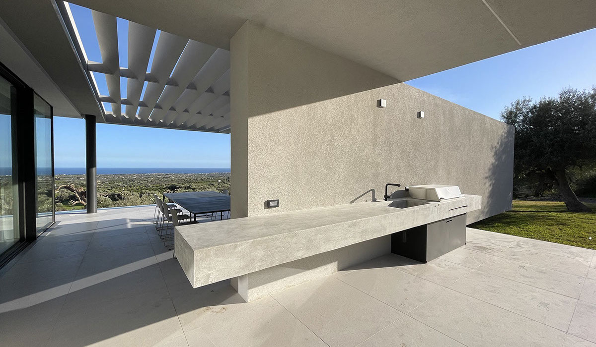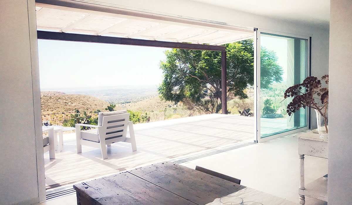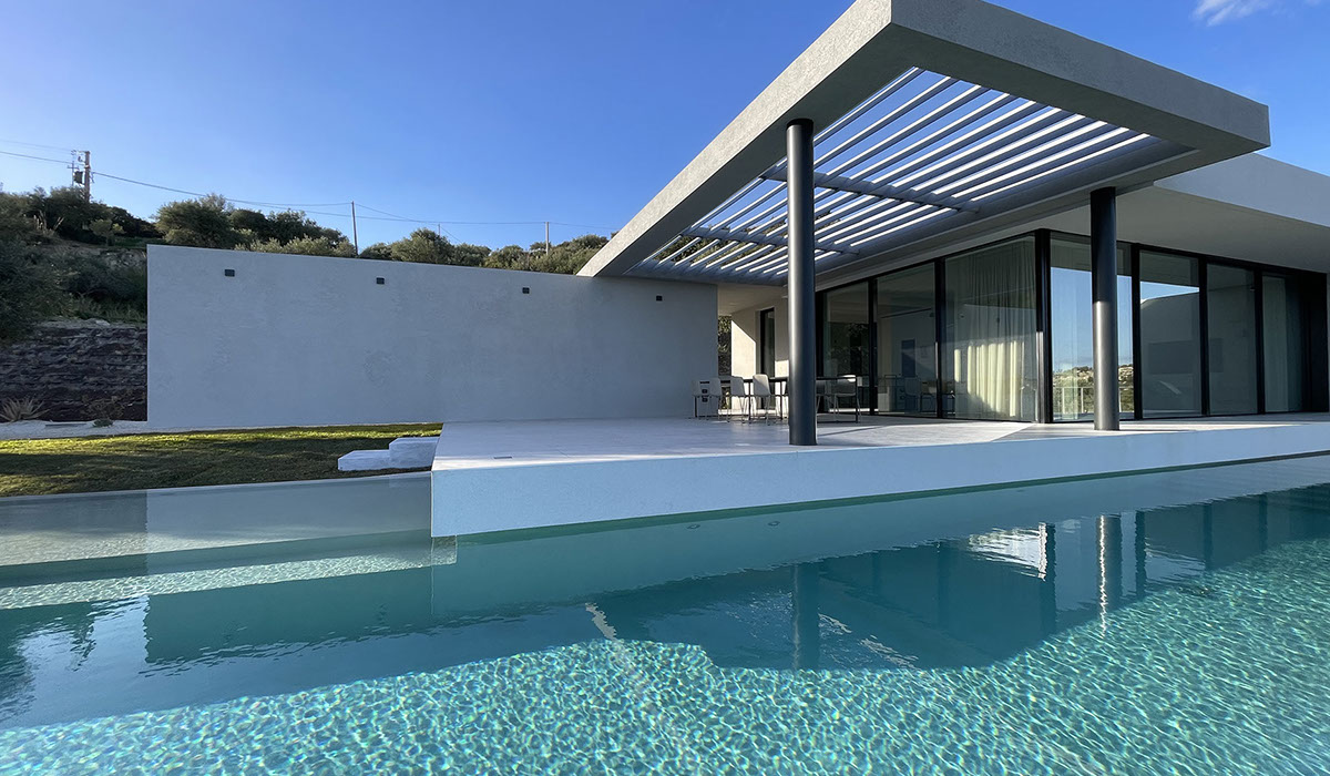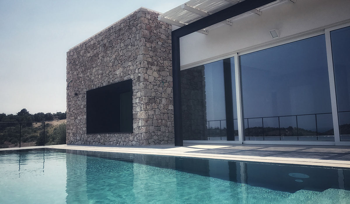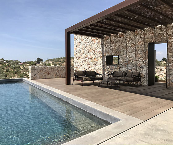 villa unifamiliare vista mare con piscina a sfioro realizzata all'interno di un verdeggiante uliveto a pochissimi km dalla Città di Noto