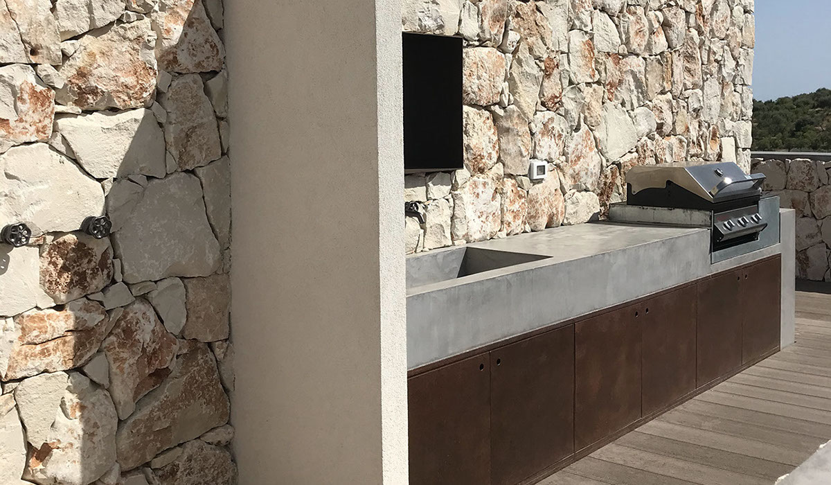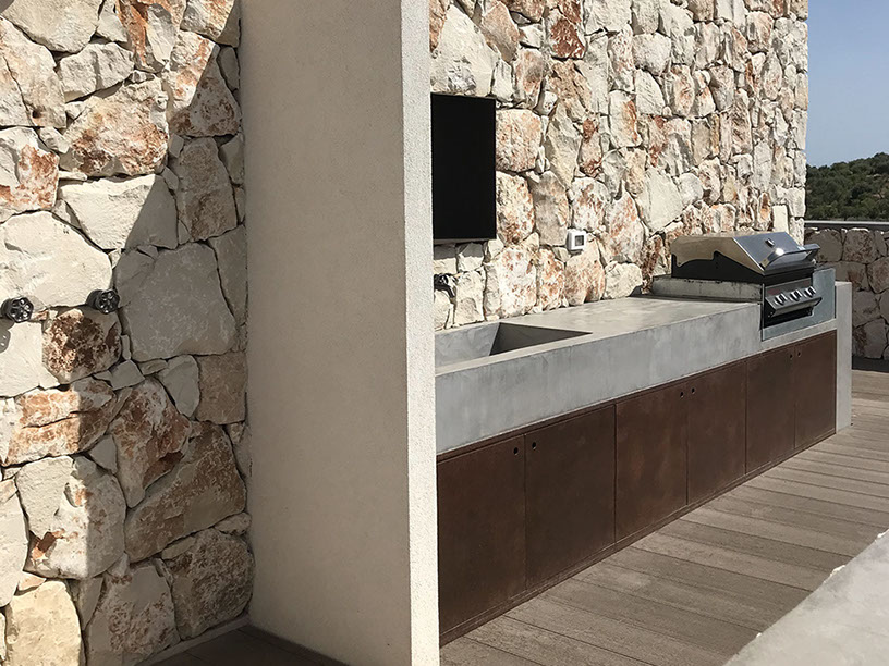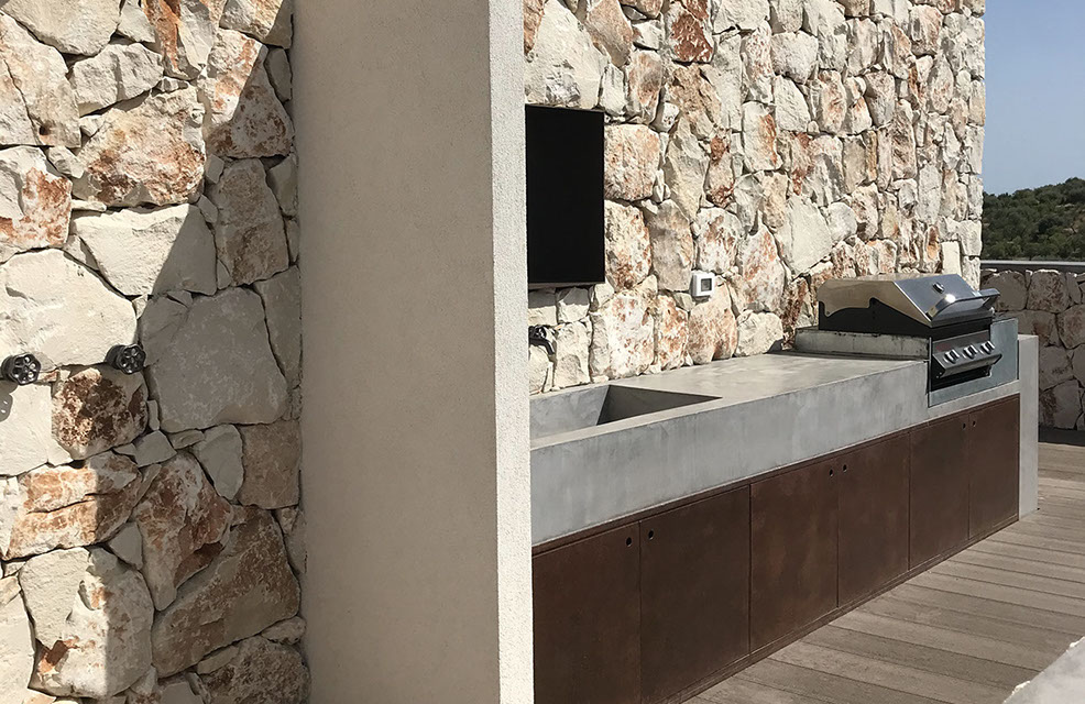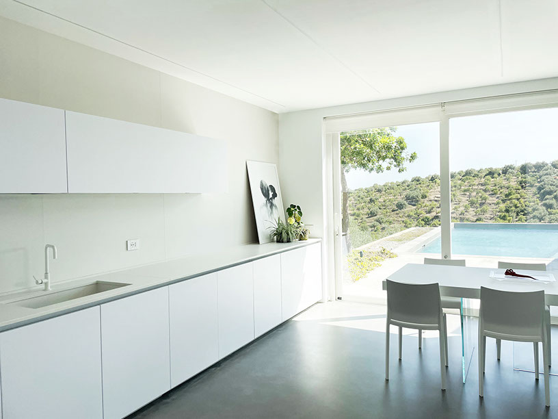 ristrutturazione di un'abitazione anni 80 sulla vetta di una zona montuosa con ampia vista mozzafiato sul mare