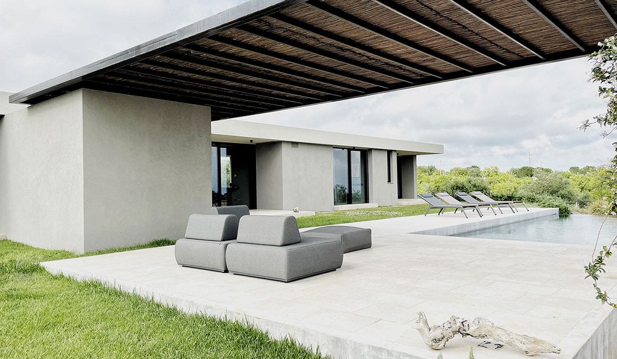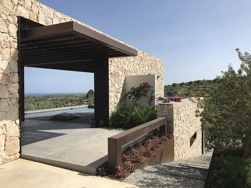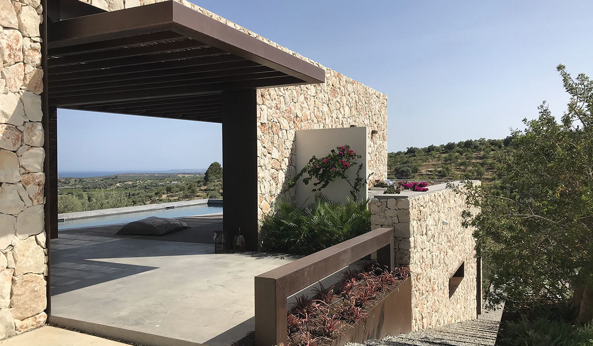 villa unifamiliare vista mare con piscina infinity realizzata nelle campagne siciliane nei pressi della Città di Noto