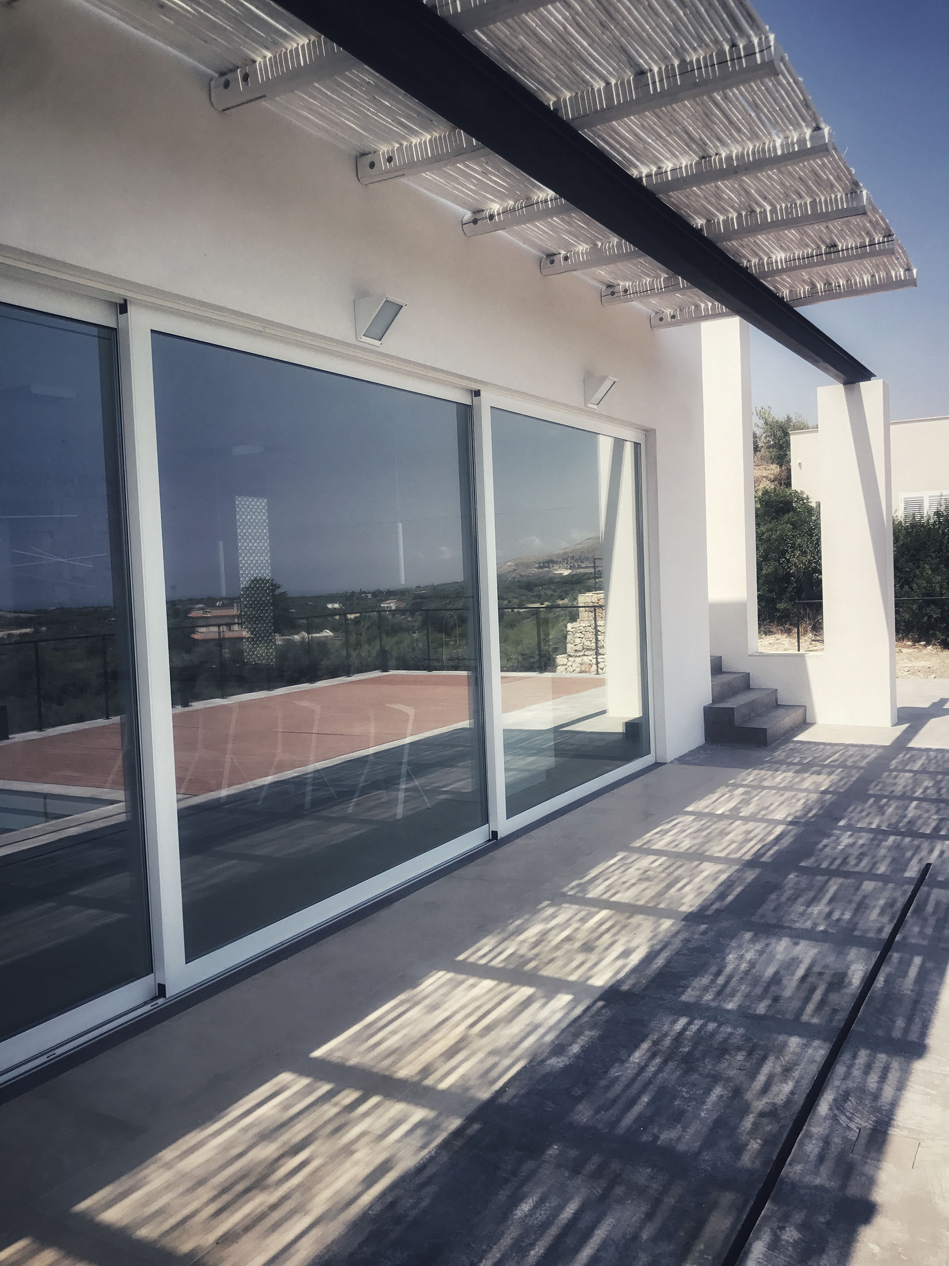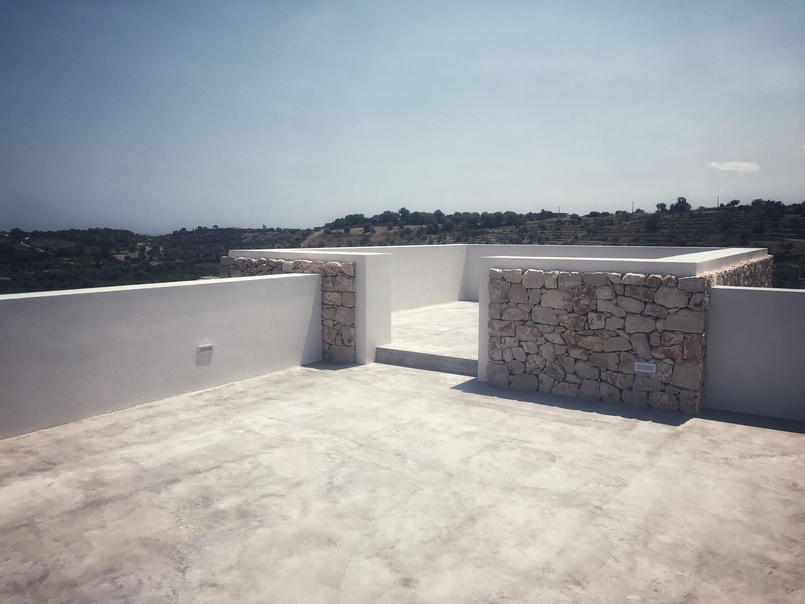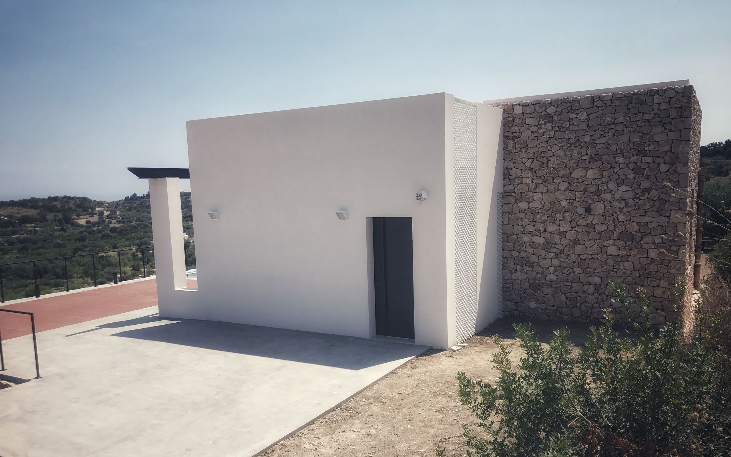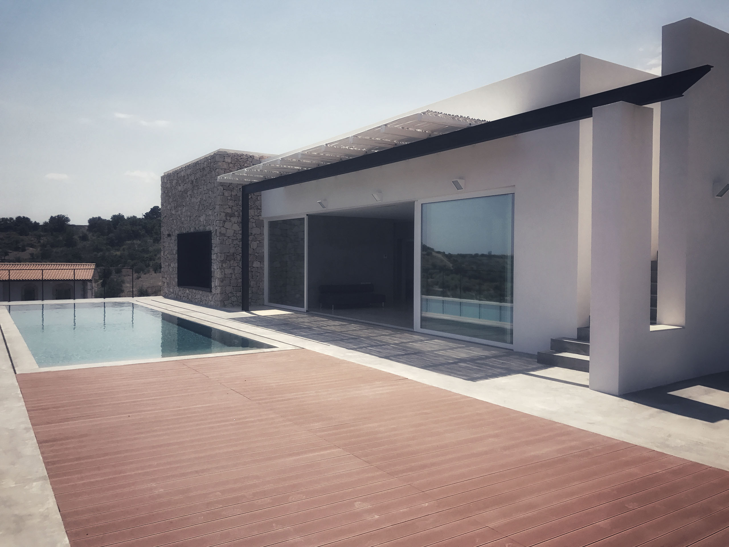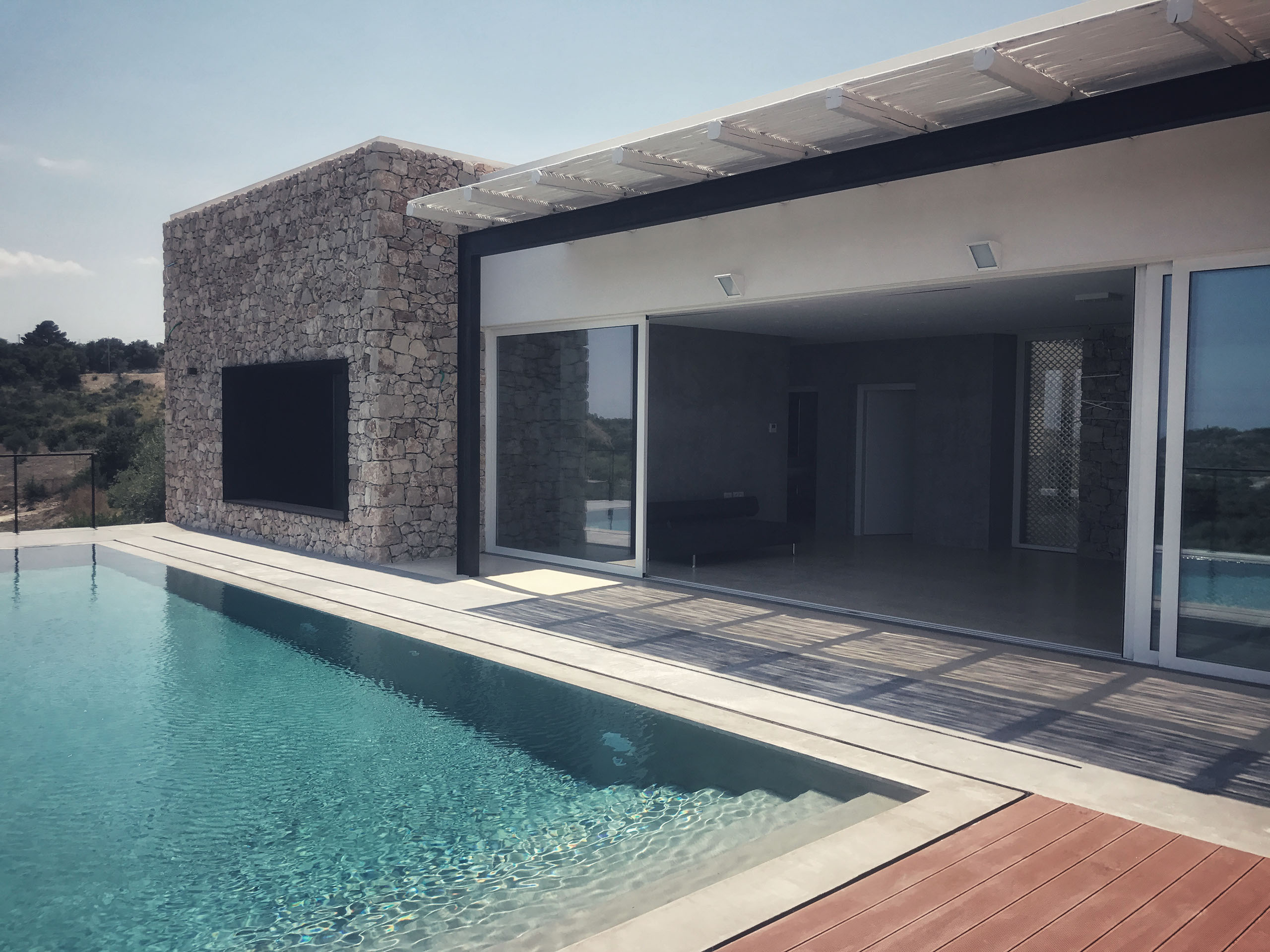 villa unifamiliare vista mare con piscina a sfioro realizzata all'interno di un verdeggiante uliveto a pochissimi km dalla Città di Noto