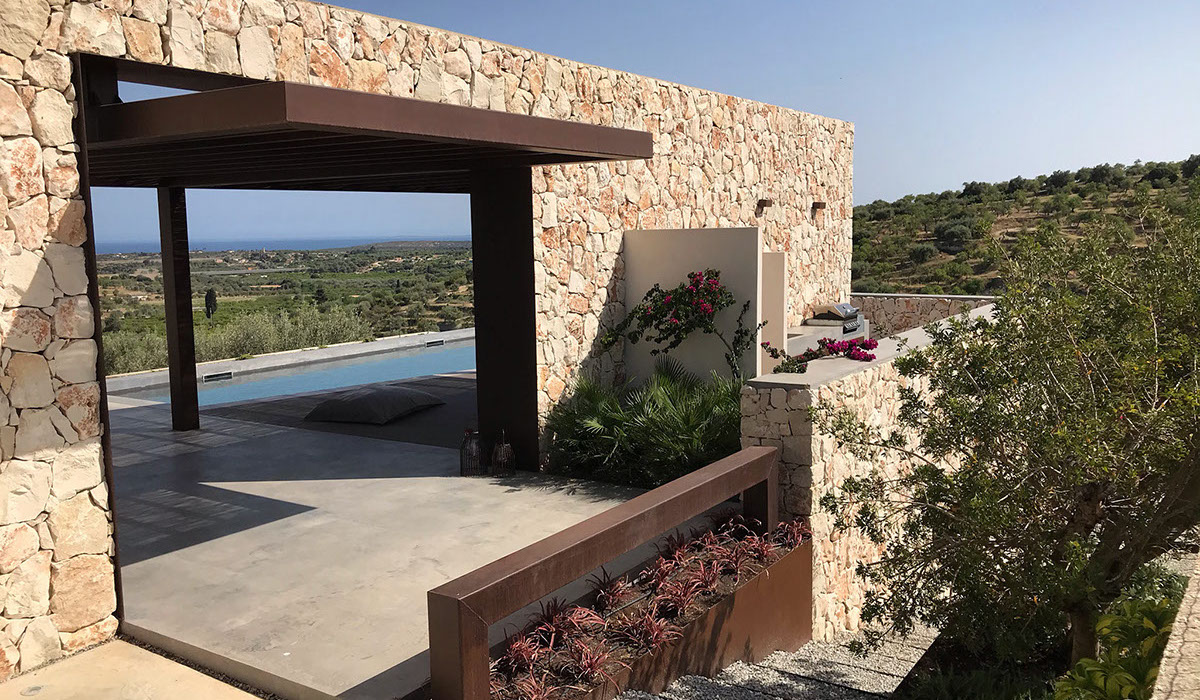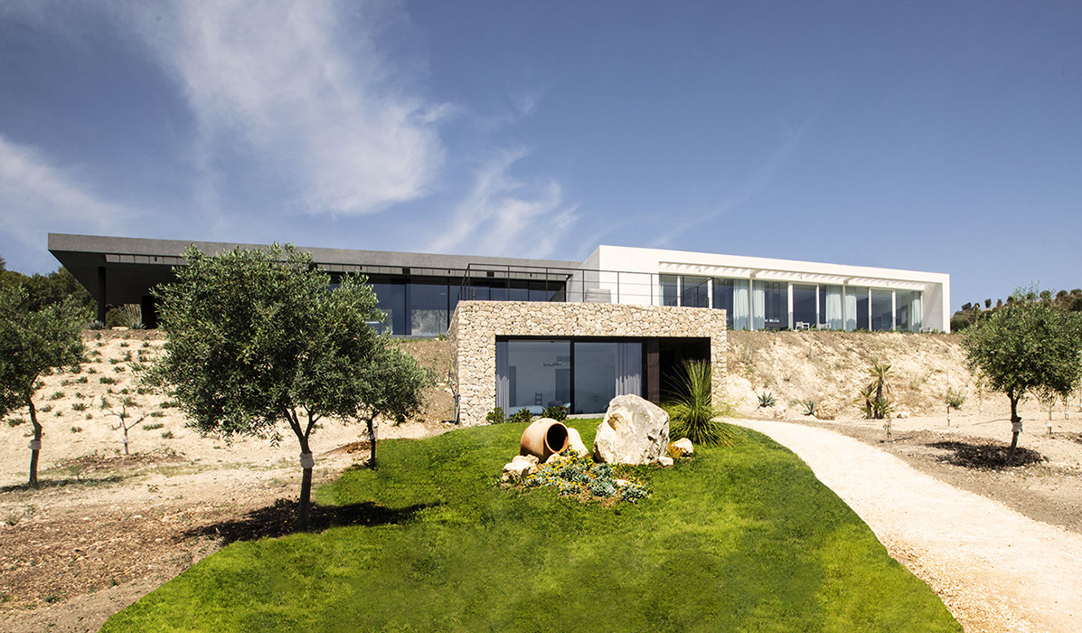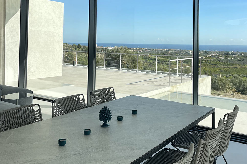 exclusive detached villa with sea view and infinity pool built in the Sicilian countryside near the City of Noto